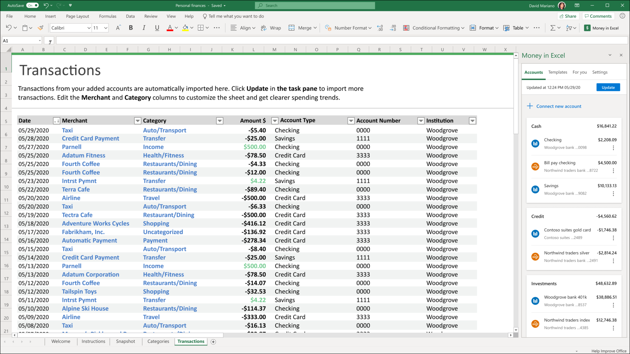 Microsoft добавила в Excel функцию Money, которая позволит следить за личными финансами. Для этого пользователю нужно предоставить приложению доступ к собственному счёту в банке или карте.